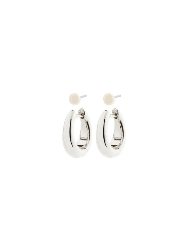 Un ensemble 2-en-1 qui combine des boucles d’oreilles classiques en perles d’eau douce et de petits anneaux épais et brillants, plaqués or ou argent. Fabriqué à partir de 93 % de matériaux recyclés, tu peux les porter en toute conscience.